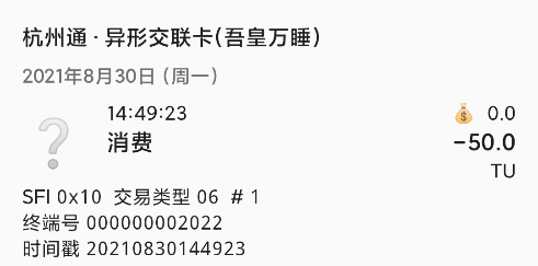 | Summary | 0000101: 杭州交通联合双标卡退卡交易应为CU | ||||