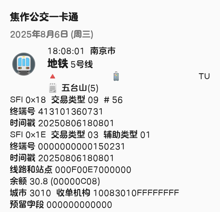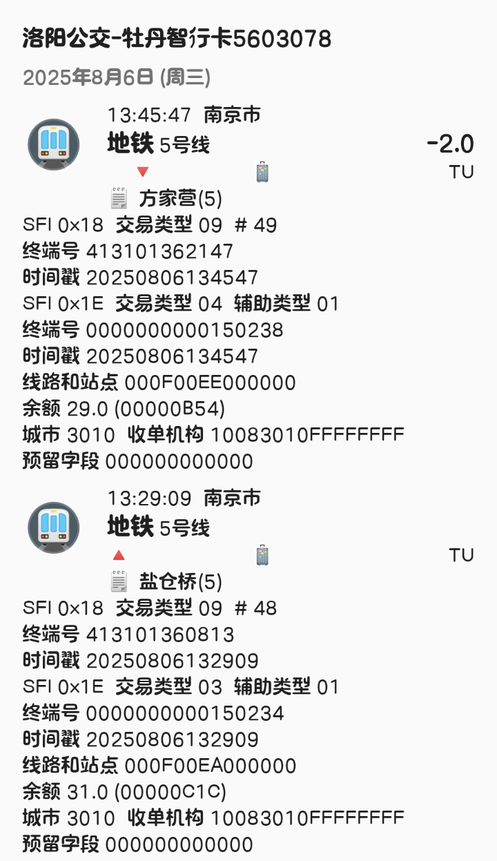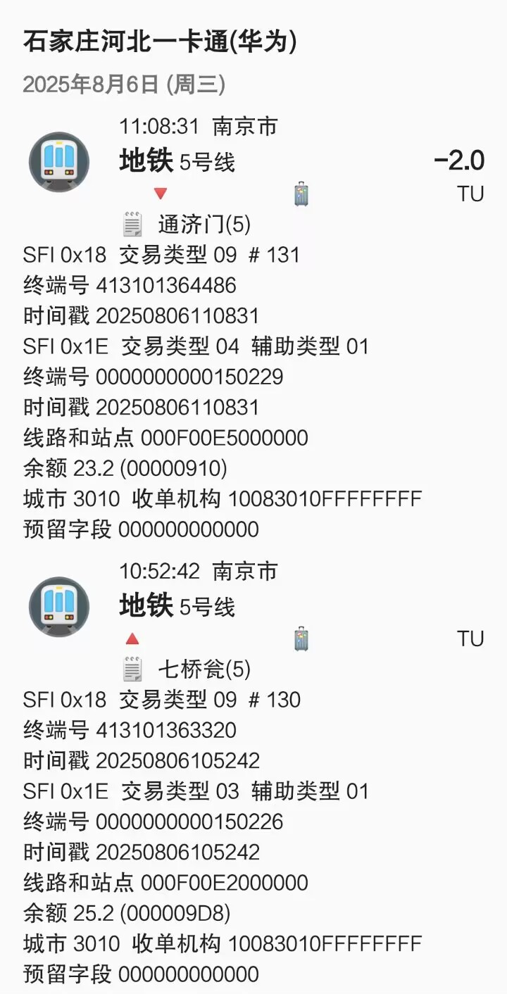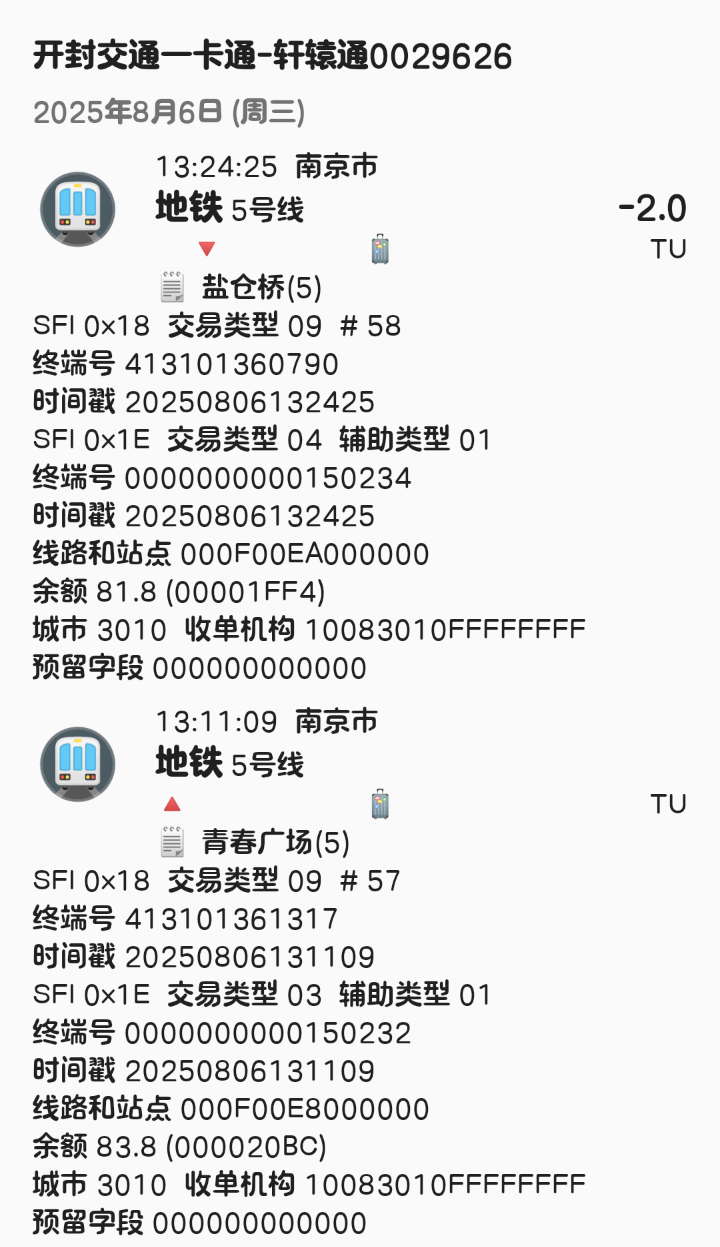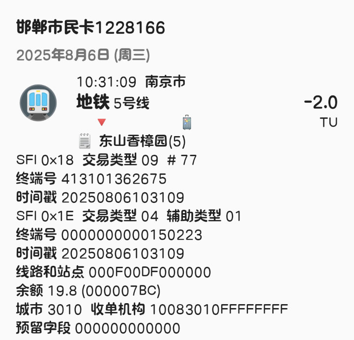 | Description | 南京地铁5号线北段(东山香樟园~方家营区间)已开通站点1E信息汇总如下: 东山香樟园 000F00DF 附件为以上各站点信息截图可参考 | ||||
