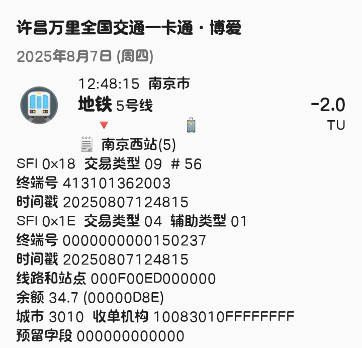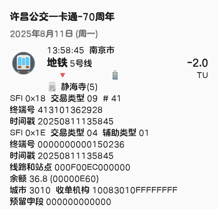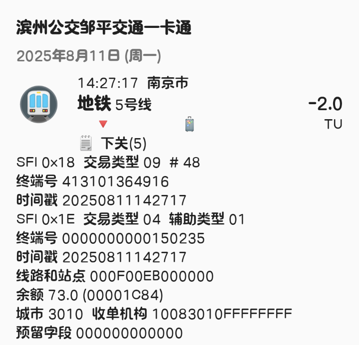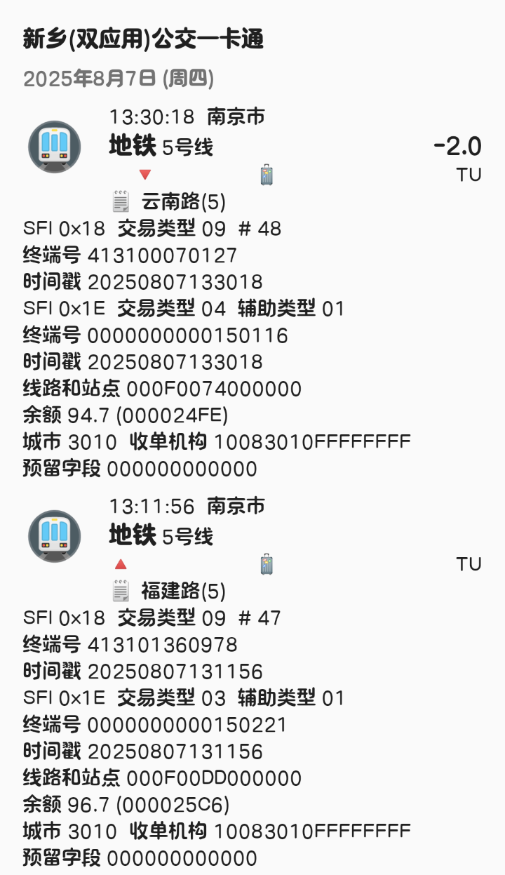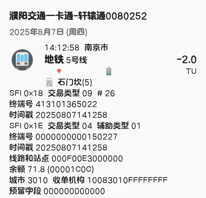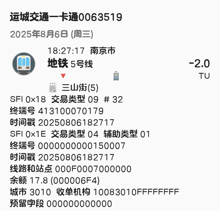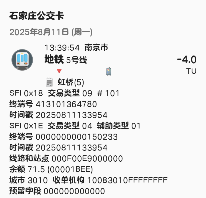| Description | 南京地铁5号线北段(东山香樟园~方家营区间)已开通站点1E信息汇总如下: 东山香樟园 000F00DF 附件为以上各站点信息截图可参考 | ||||