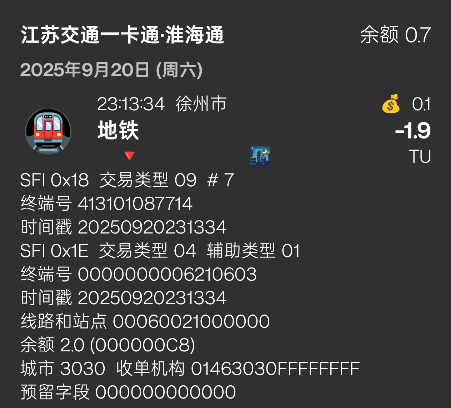 Description | 刷卡记录显示为“地铁”而非交易车站名称 | ||||