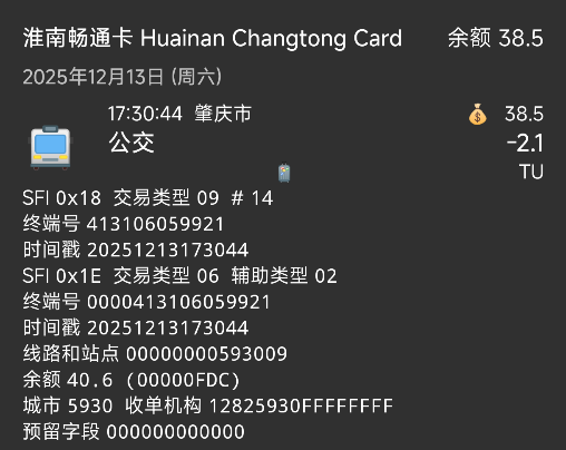 | Description | 如题,在淮南公交24路的老卡机刷卡,读取为肇庆公交,有无办法在设备端更改记录的数据 | ||||