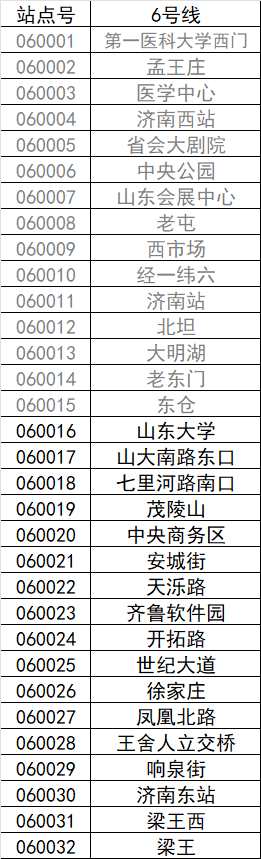 6号线西段及中段(第一医科大学西门-东仓)暂未开通,本次只开通东段(山东大学-梁王) |