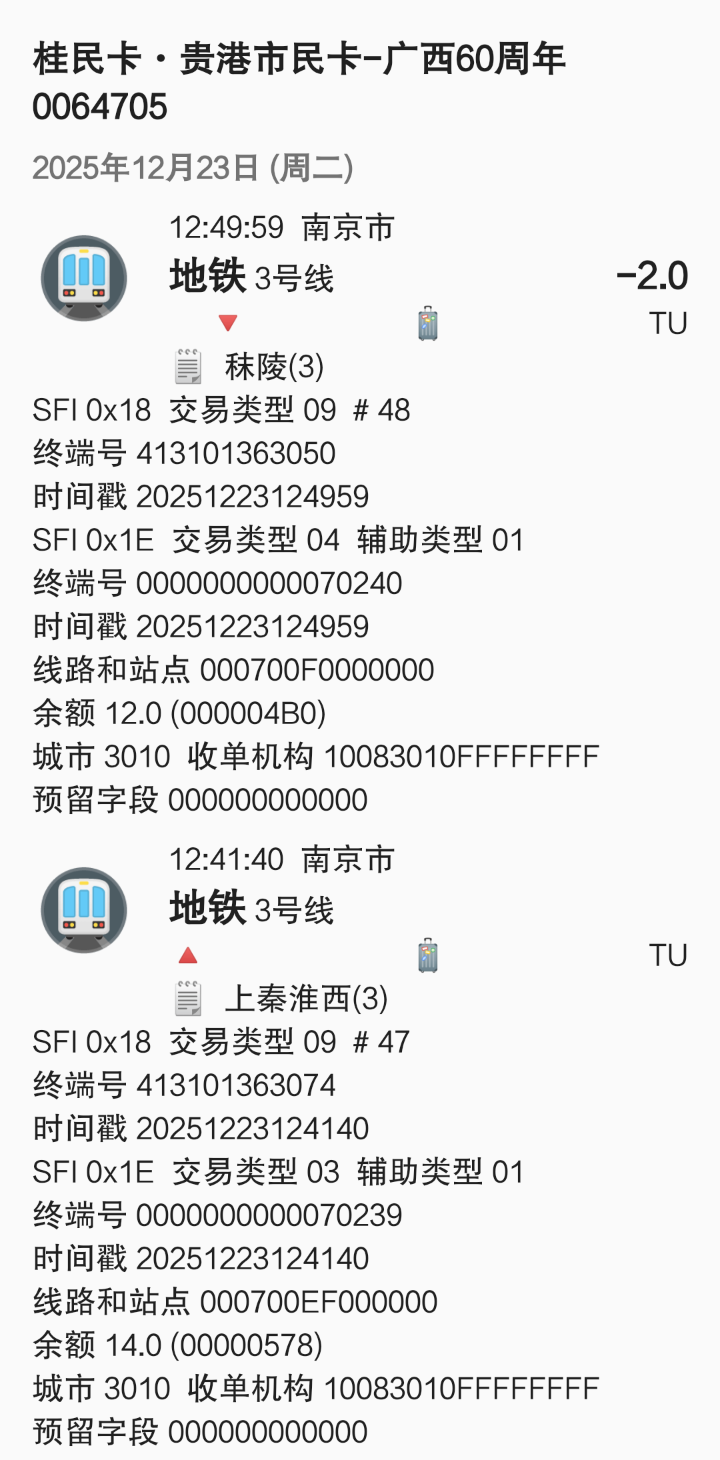 | Description | 南京地铁3号线三期站点信息如下: 上秦淮西 000700EF | ||||