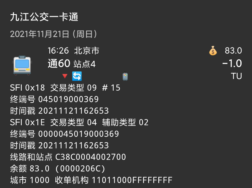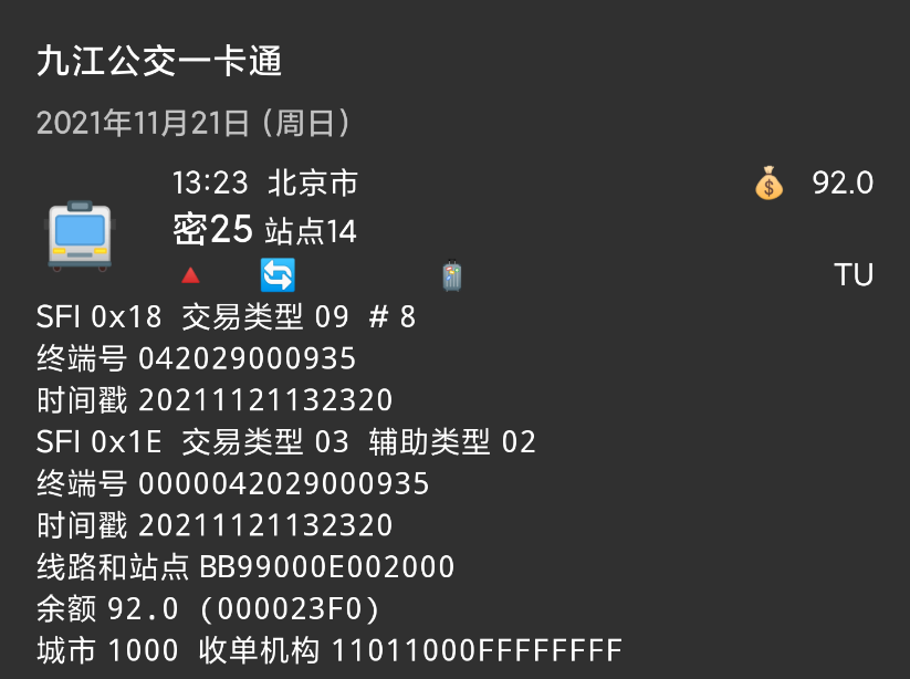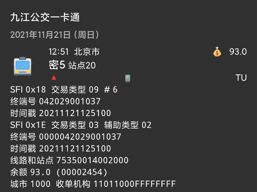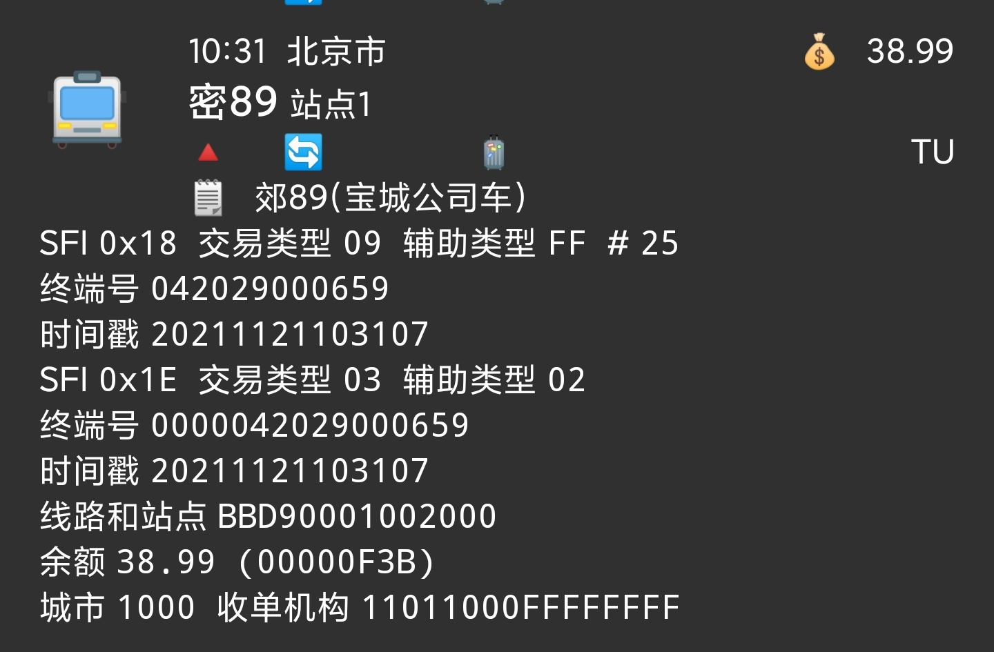 今天去密云正好坐了密5和密25,如下面截图,这两车都为宝城公司的,9-12位均为0020,所以应该是宝城公司的密郊混用号段,001F猜测是鑫新通达公司的9-12位,预测应该也是密郊混用,只有等下次去密云找鑫新通达公司的密字头车来验证了。(这个公司似乎只有密38.密51.密52和郊89) |