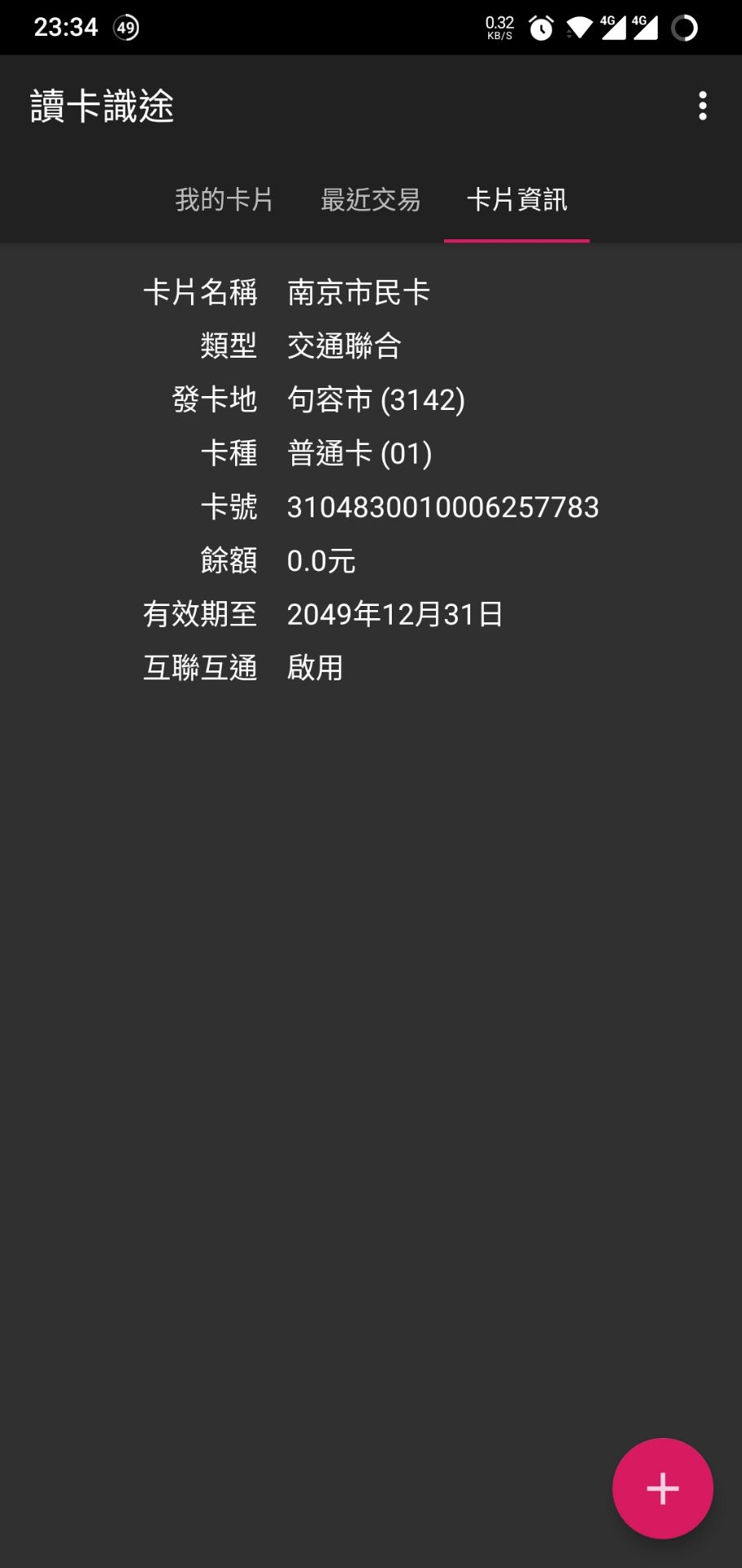 | Description | 城市代码为3142的南京市民卡不享受南京换乘优惠、不享受南京地铁累进优惠。该卡卡背面标注的是“金陵通交通卡句容卡”。和一般的南京市民卡差别较大,建议卡名称作出区分。 | ||||