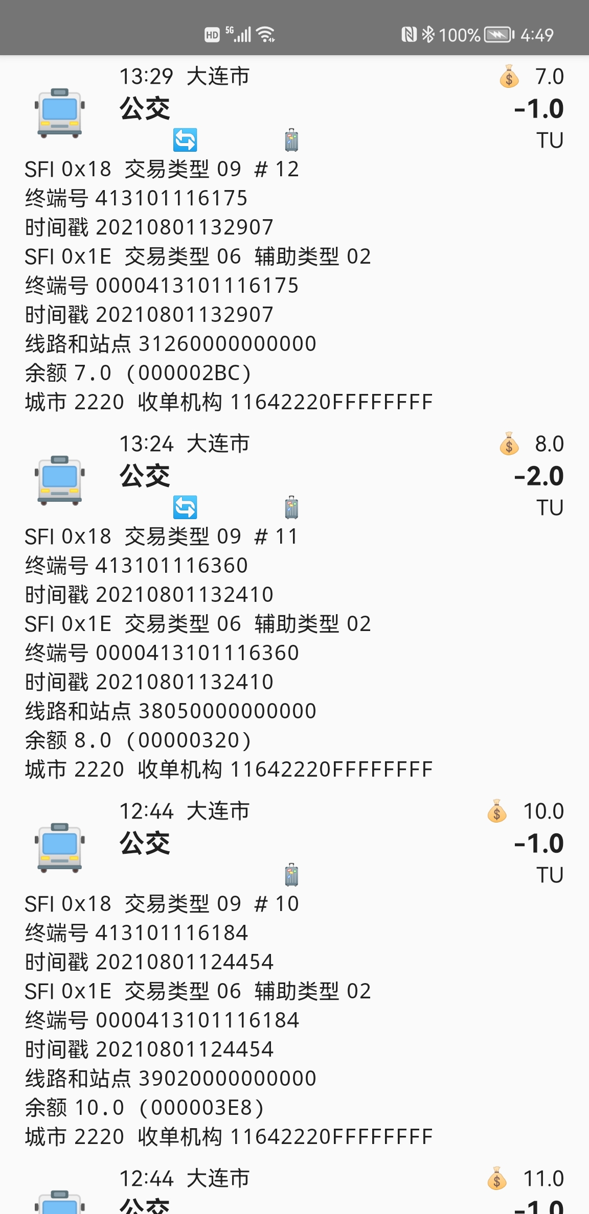 | Description | 大连金州公交由于空调车、非空调车收费不同,因此在卡机路号上有所区分,整体而言分布比较规律,下面是各线路与其空调车、非空车卡机路号的对应(标N/A的意为此线路无此车种,或是暂未发现此车种,待之后补充): 金州101:空调车3801、非空调车N/A 截图见附图,由于线路实在过多,恕在此仅举一例共3条刷卡记录。您在APP中标识出线路后,可以考虑在线路号后加括号“空调车“或”非空调车“加以区分。 大连开发区公交由顺通、中山两家公司运营,同一公司下的所有空调车均使用统一路号: 顺通:2901 您在APP中标识出线路后,可以考虑显示为“开发区公交(顺通空调车)”和“开发区公交(中山空调车)”,或是使用其他写法对其加以区分。 以上。 | ||||