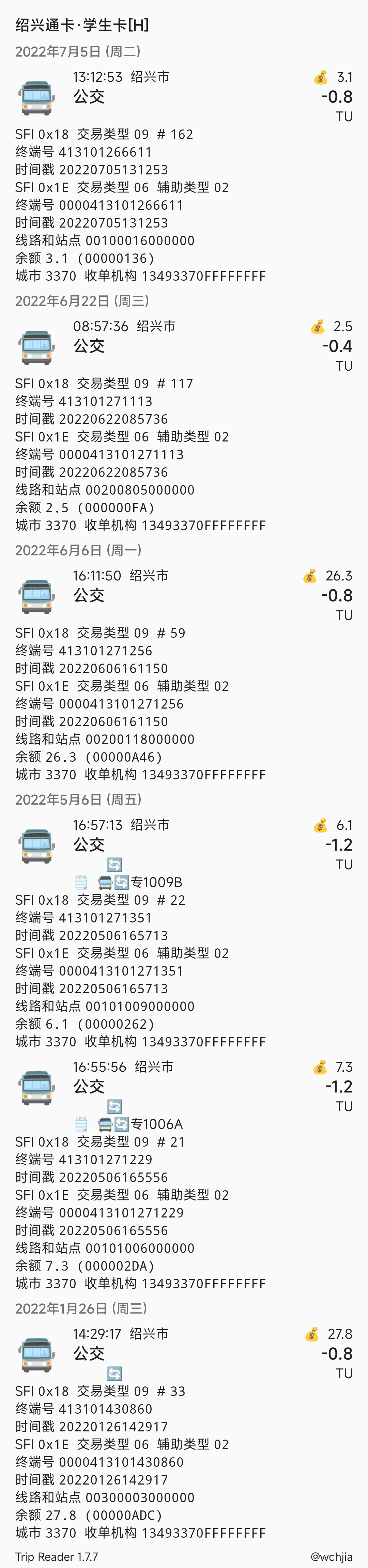 | Description | 升级1.7.7版本后,一些绍兴公交线路无法识别,绍兴公交一直以来都用6位1E,部分线路1E开头会带1带2带3,这个在以前的识别中均没有影响。建议恢复线路识别,目前真正用啊6位的1E也就那种地铁专线旅游专线跨市专线。 | ||||