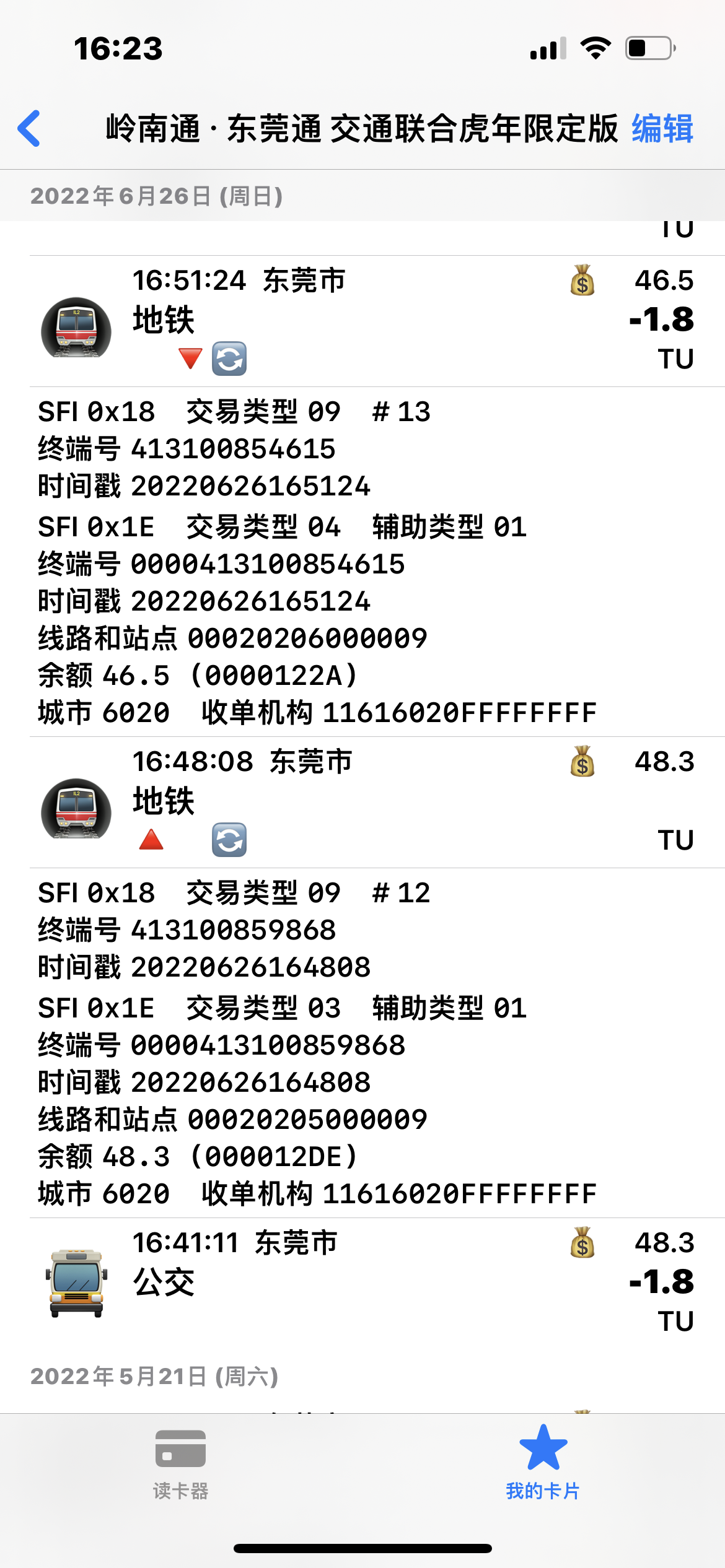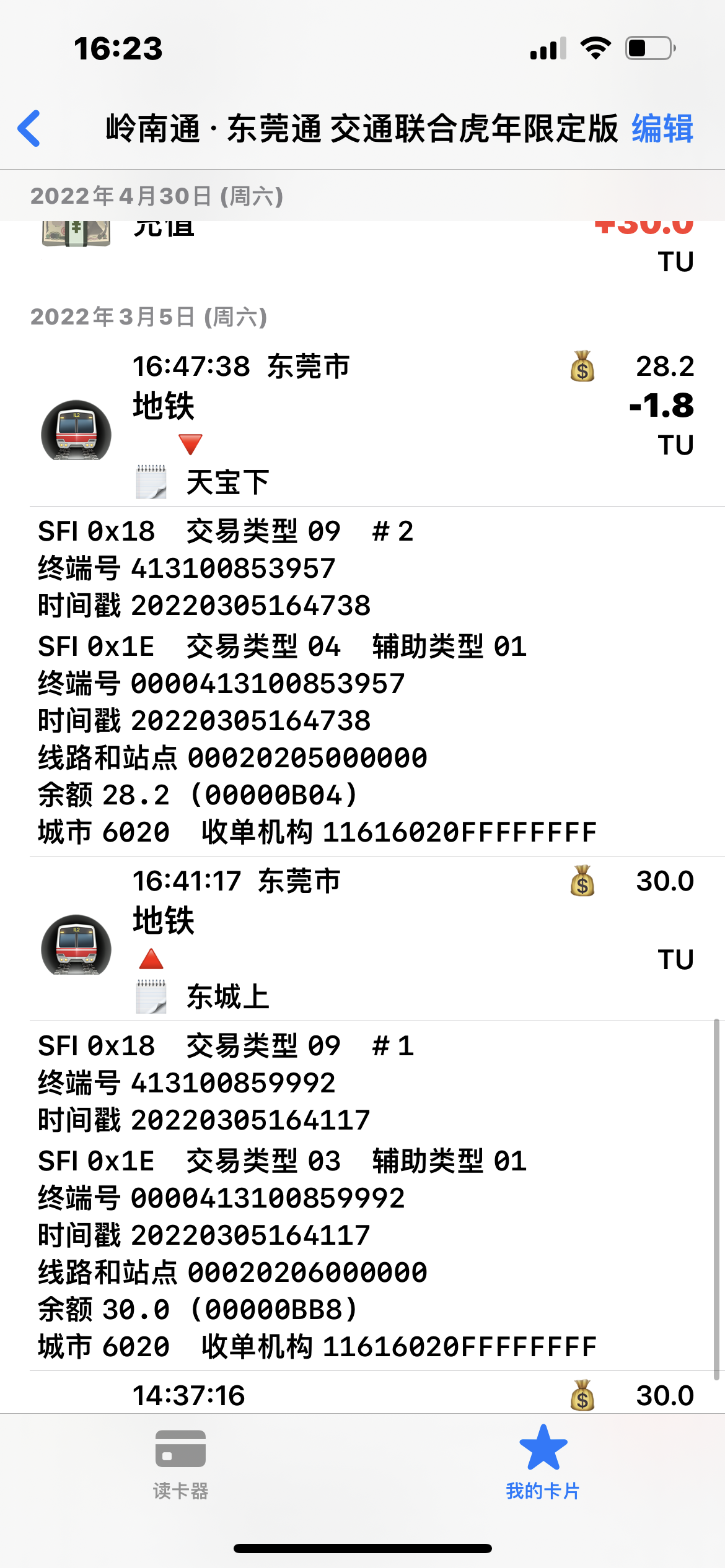 | Description | 东莞地铁已全部按规范写入SFI=0x1E数据,可较好判断站点。 | ||||