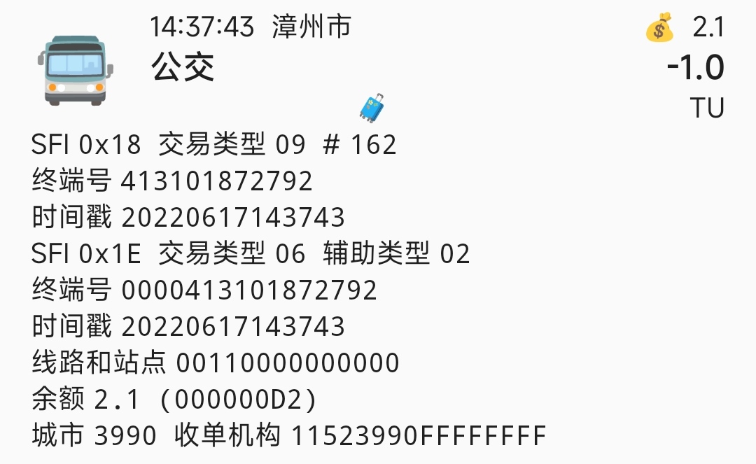 | Additional Information | 闽运公交公司使用国朗品牌卡机的大部分不写1E数据,其他使用新卡机的半数左右1E线路号错误。 | ||||
