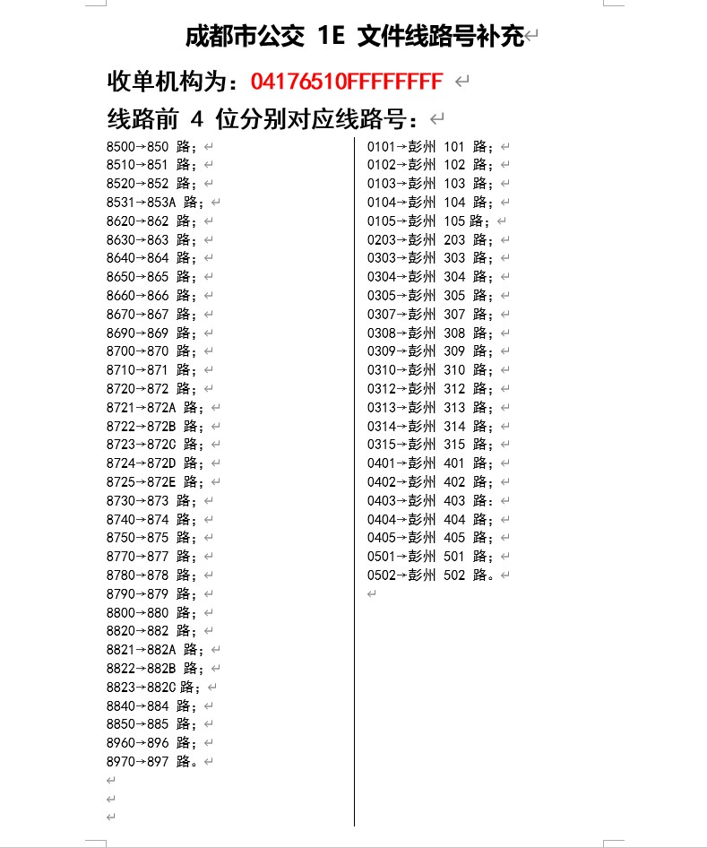 Summary0000419: 成都市公交 1E 文件线路号补充
