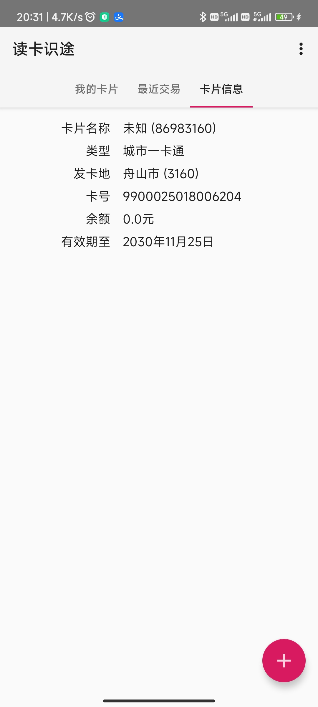 | Description | 舟山住建部群岛通卡 | ||||