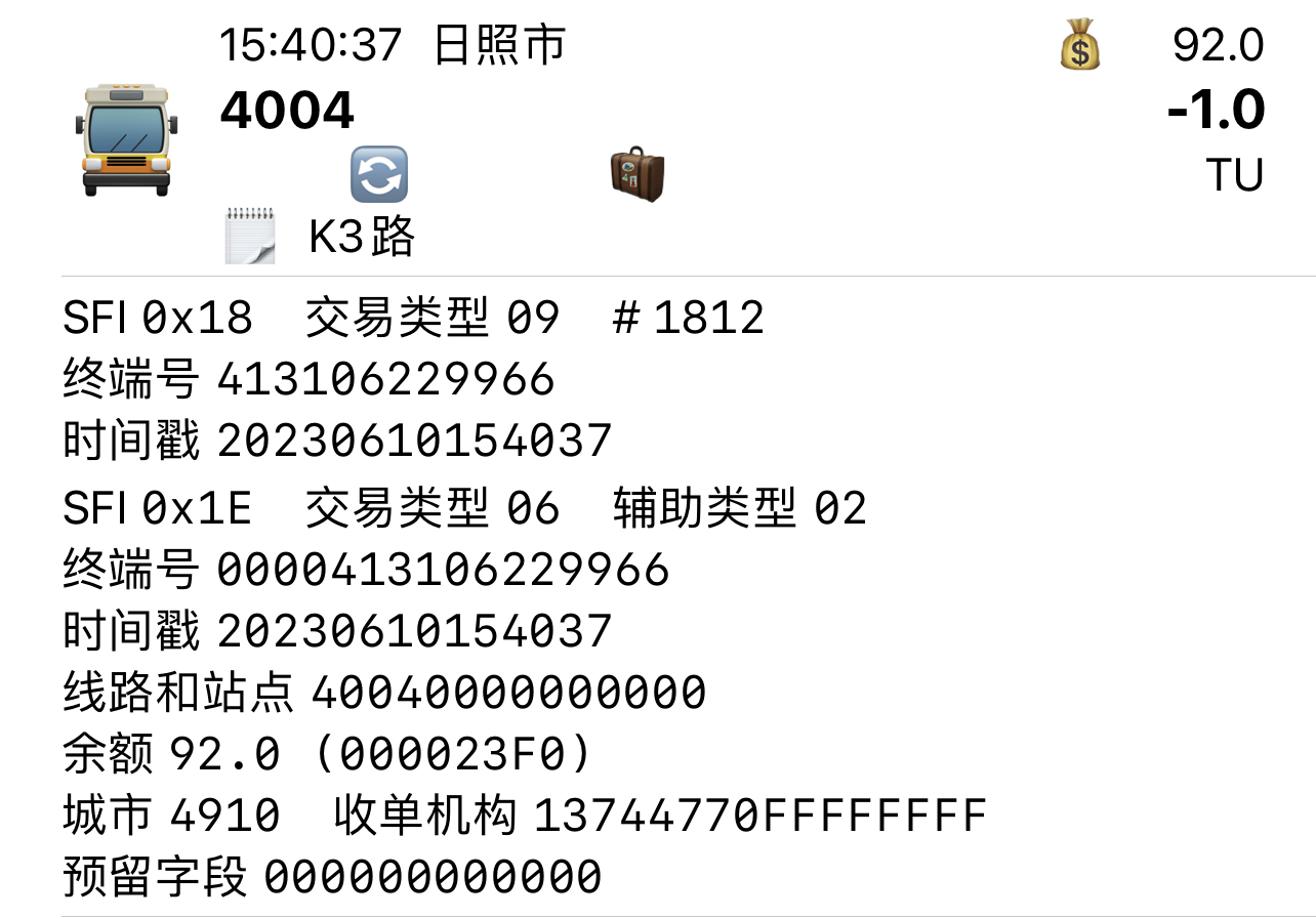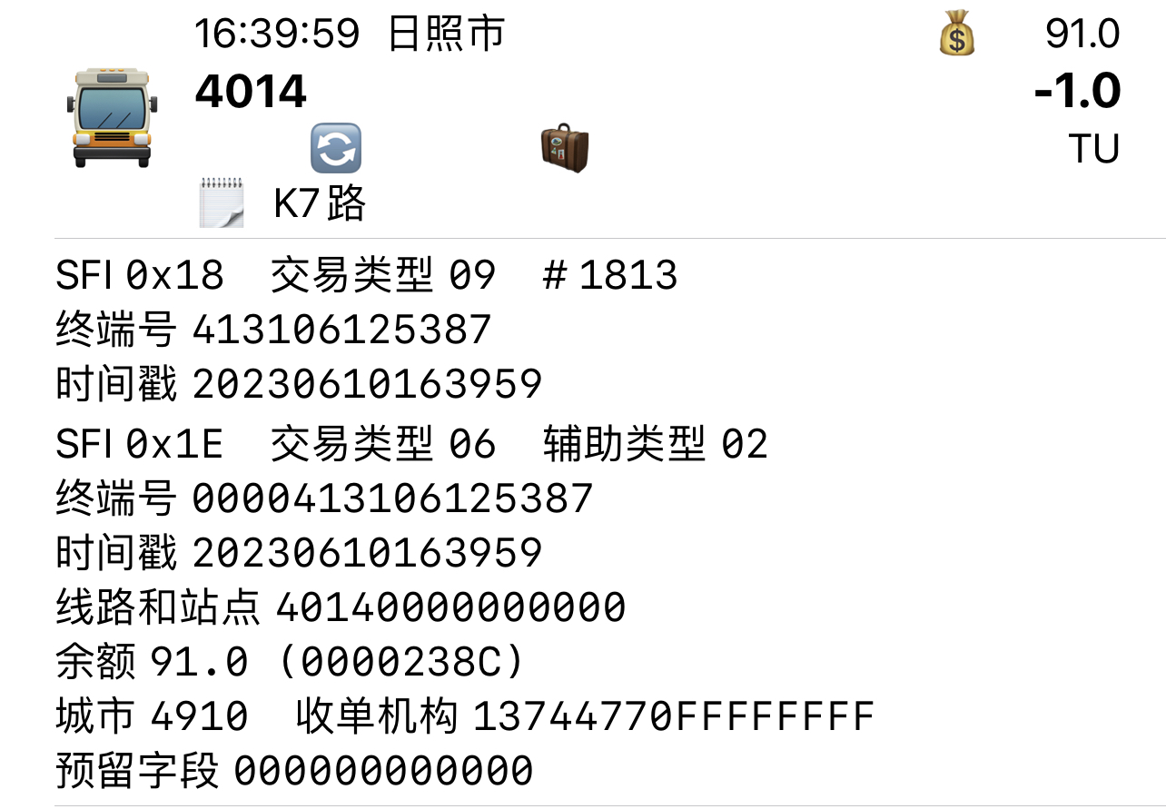 | Description | 日照公交部分车辆安装天津通卡卡机,写入线路号,补充如下: | ||||