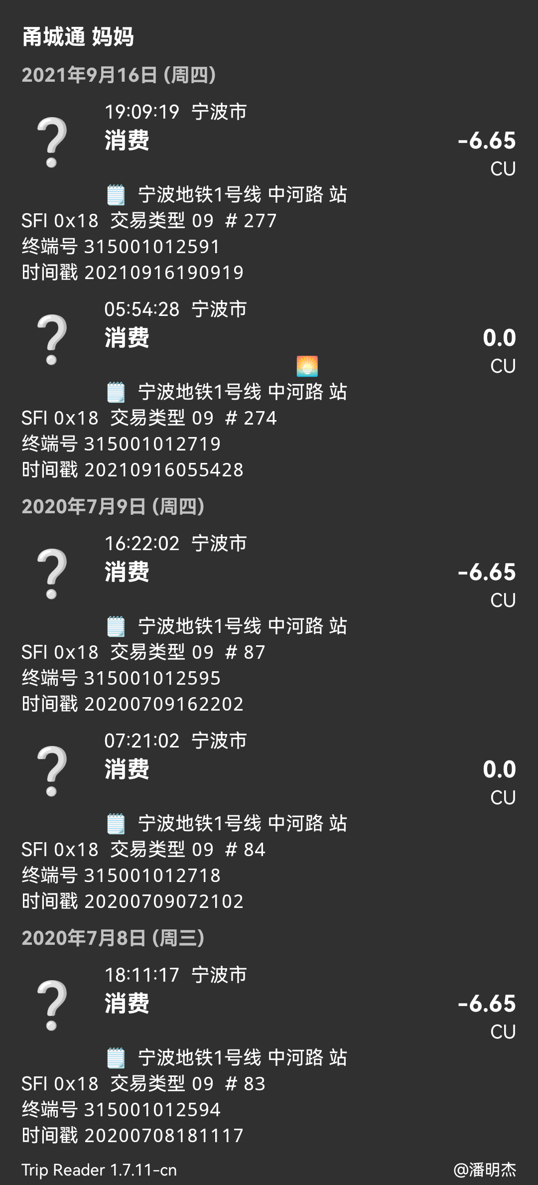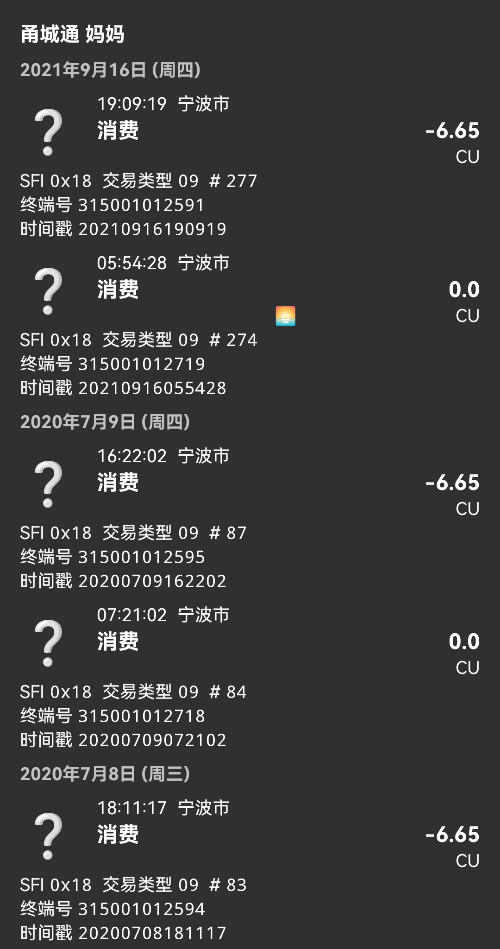 | duplicate of | 0000538 | closed | XiaoBaiXBS | 宁波地铁 CU卡终端号补充 |