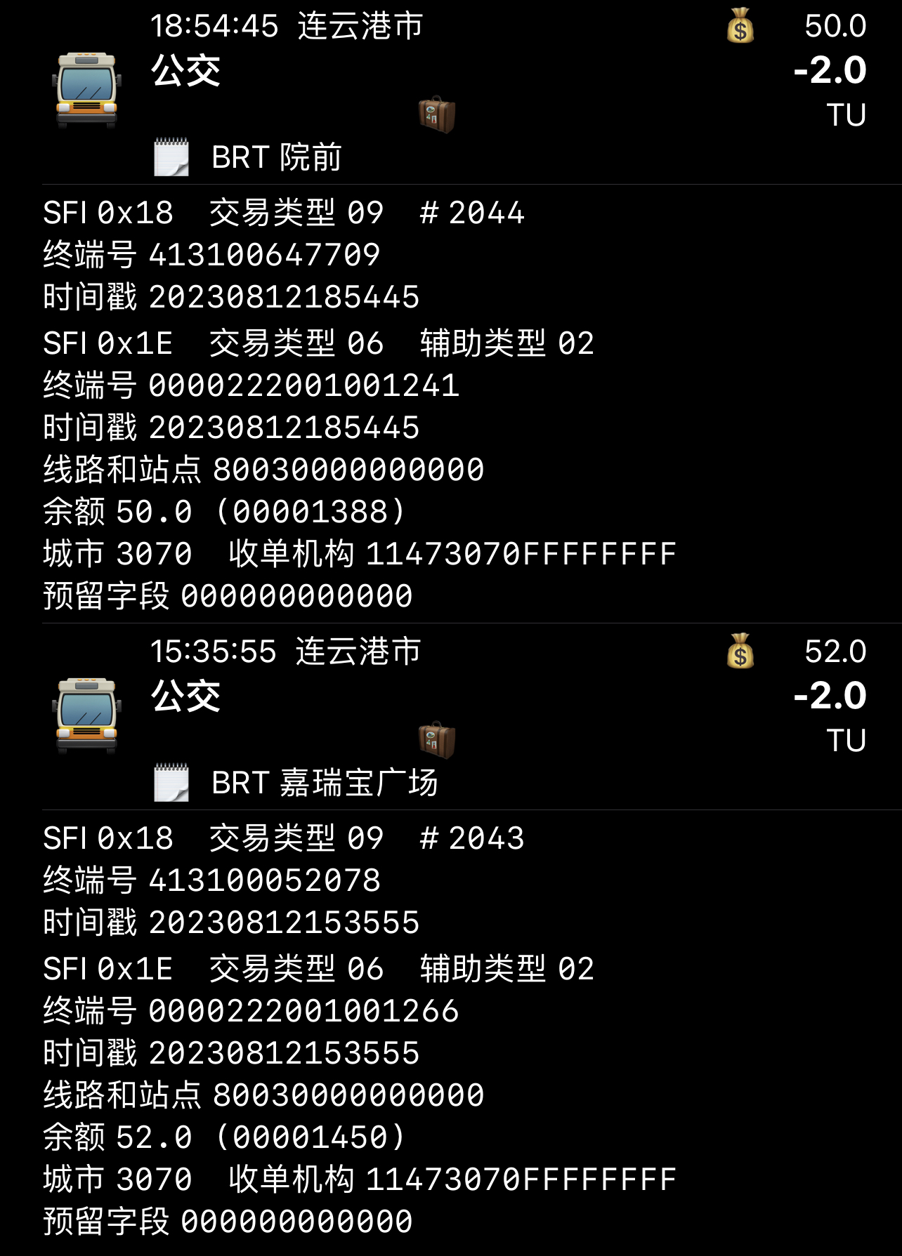 | Description | 1.连云港BRT站台闸机经测试,线路号均写8003,可将此线路号识别为BRT | ||||