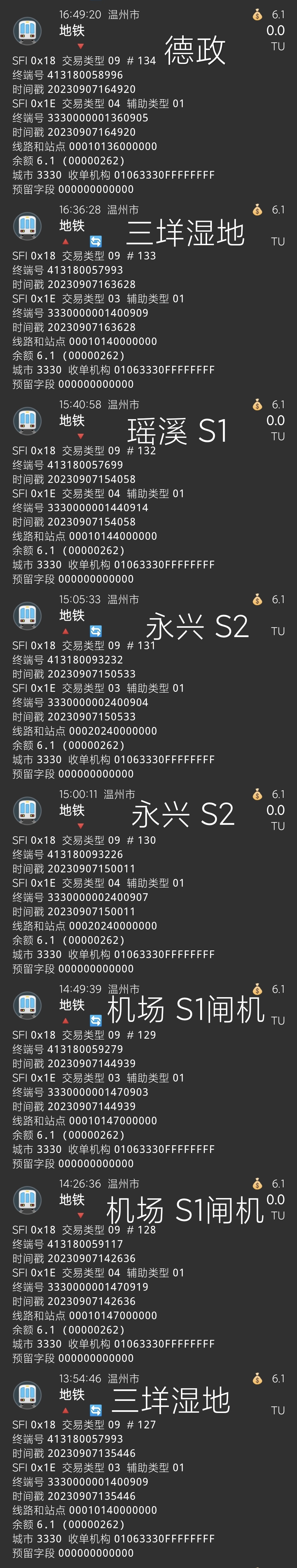 | Description | 灵昆、机场虽是换乘车站,但(S2线开通之前已经有S1线的闸机)共用S1线的闸机,所以换乘车站的出入站记录显示归属的是S1线。 | ||||