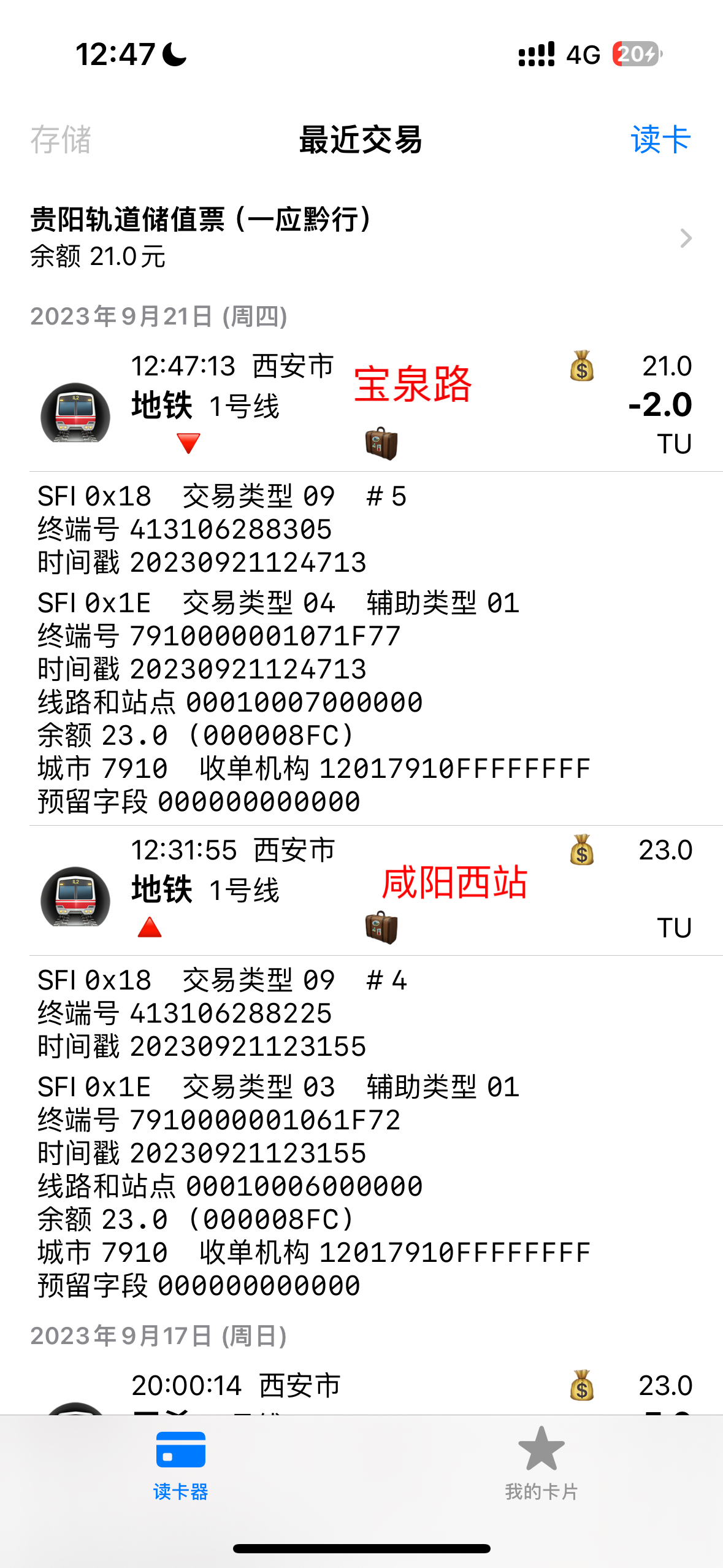 | Description | 西安地铁1号线三期已开通,已测试如下站点: | ||||