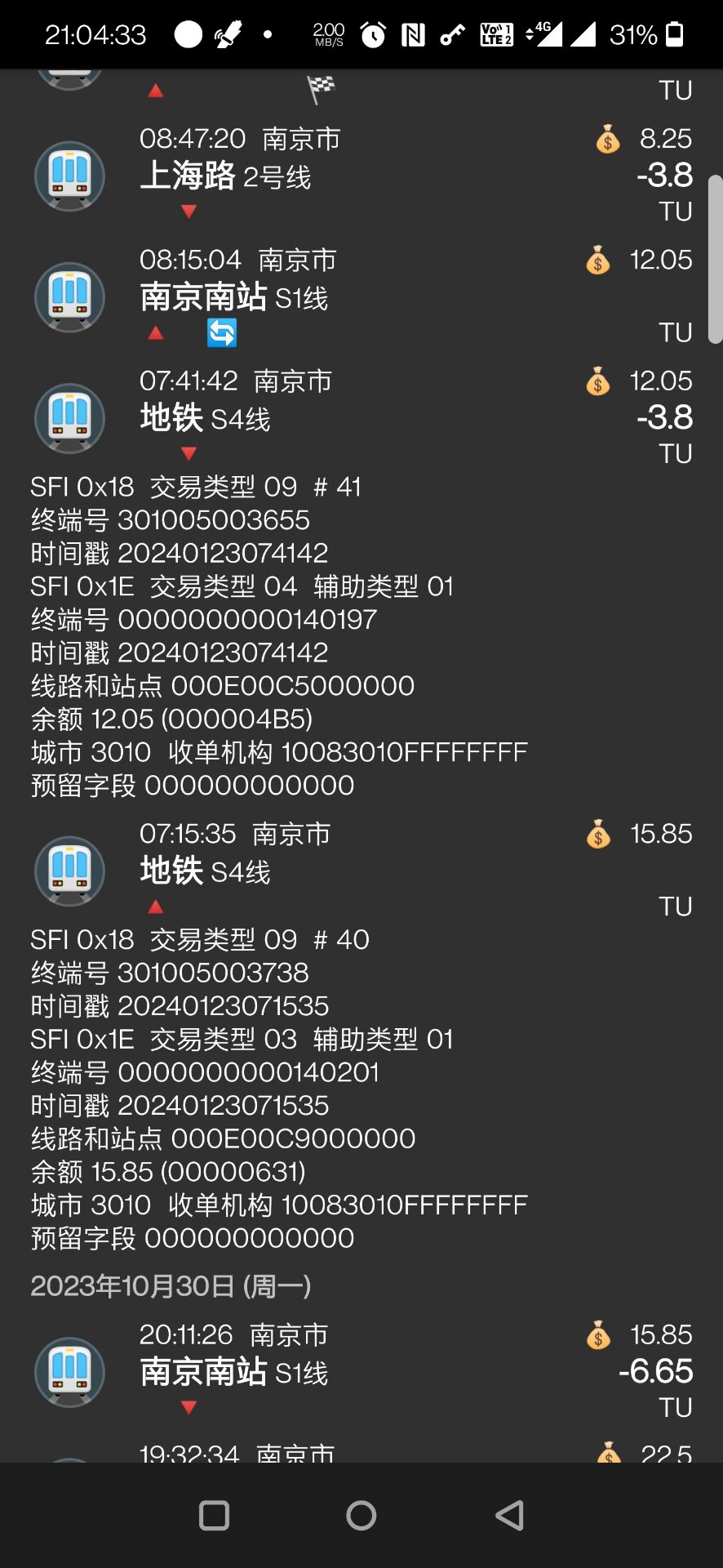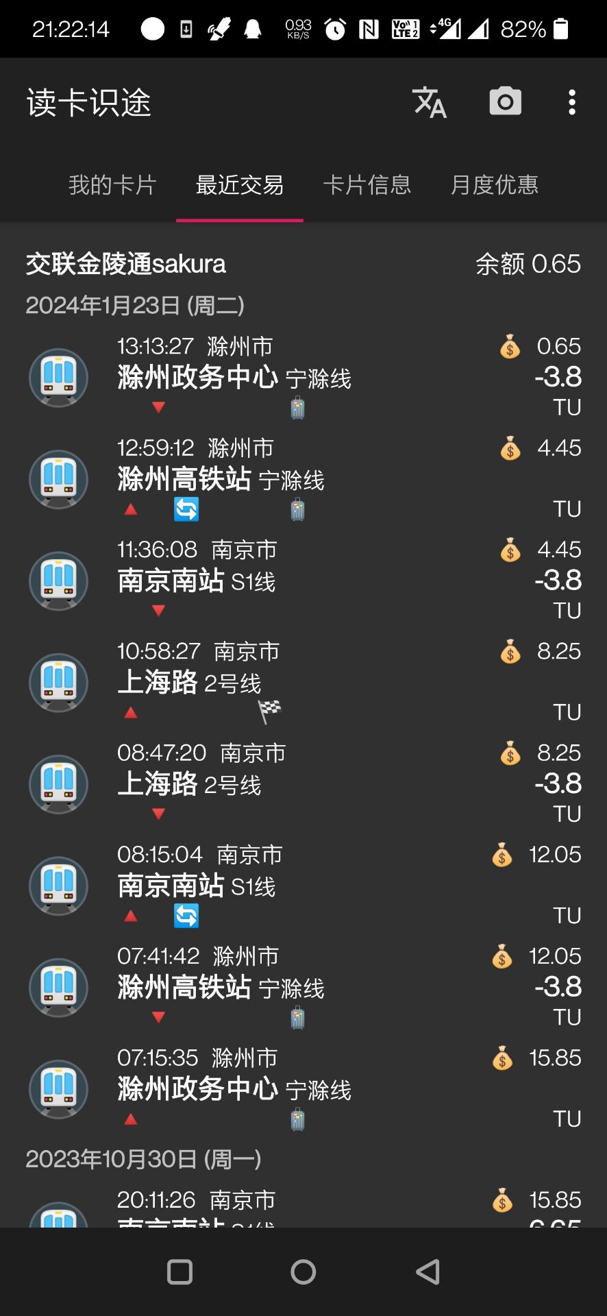 | Description | 新版本发布后历史记录中关于滁宁城际的历史记录中线路号顺利识别为S4但是站点名称未识别到,重新拍卡读卡后顺利读出并覆盖,如旧记录过久,卡片内历史遗失无法拍卡读卡则历史保存的记录无法修正 | ||||
