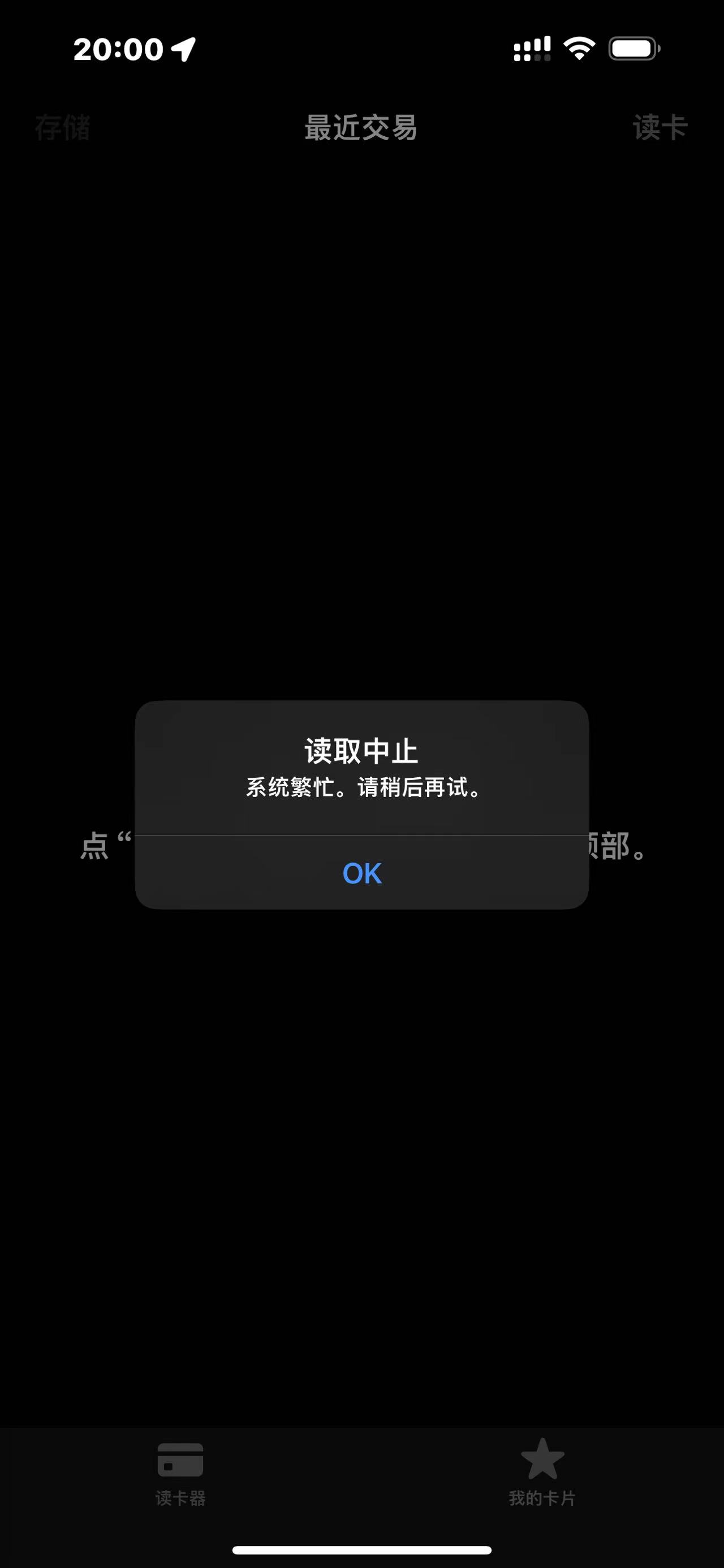 | Description | 首页点击读卡后,显示读取终止,系统繁忙。请稍后再试。 | ||||