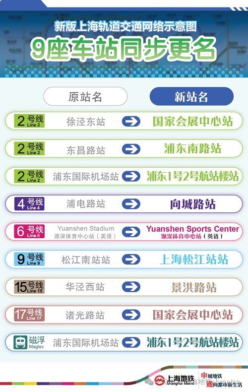 | Description | 2024年9月21日起上海地铁多座车站更名,全国多地曾发生的更名问题尽量一并修正。修正后可根据交易时间显示当时的名称。 注:以一大会址冠名的车站不做处理。 | ||||