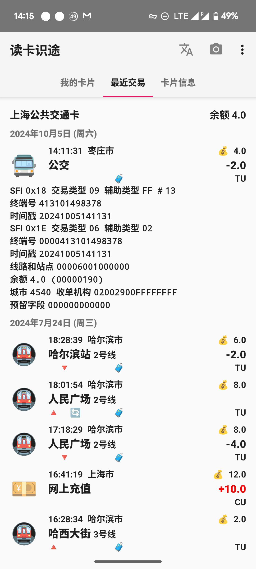 | Description | 使用上海公共交通卡乘坐哈尔滨太阳岛轮渡,被识别为枣庄市公交车 | ||||