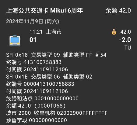 | Additional Information | 乘车线路为7路,使用卡为上海市发行的TU CU双标卡 | ||||