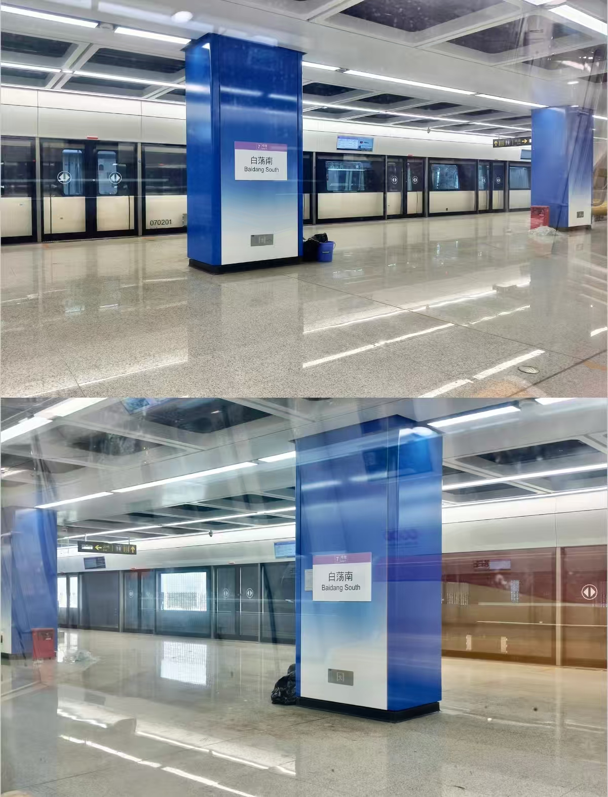 **白荡南由于站外土地规划,出入口尚未开通,车辆过站不停靠。但站名已和7号线其他站一起通过了公示,车站也已装修完毕,闸机也已安装,前后站白荡北实测47板泾实测49,故推断白荡南为48,建议app提前适配好(6号线华云站编号50也是同样情况,一切准备就绪就等苏州东站施工结束) |