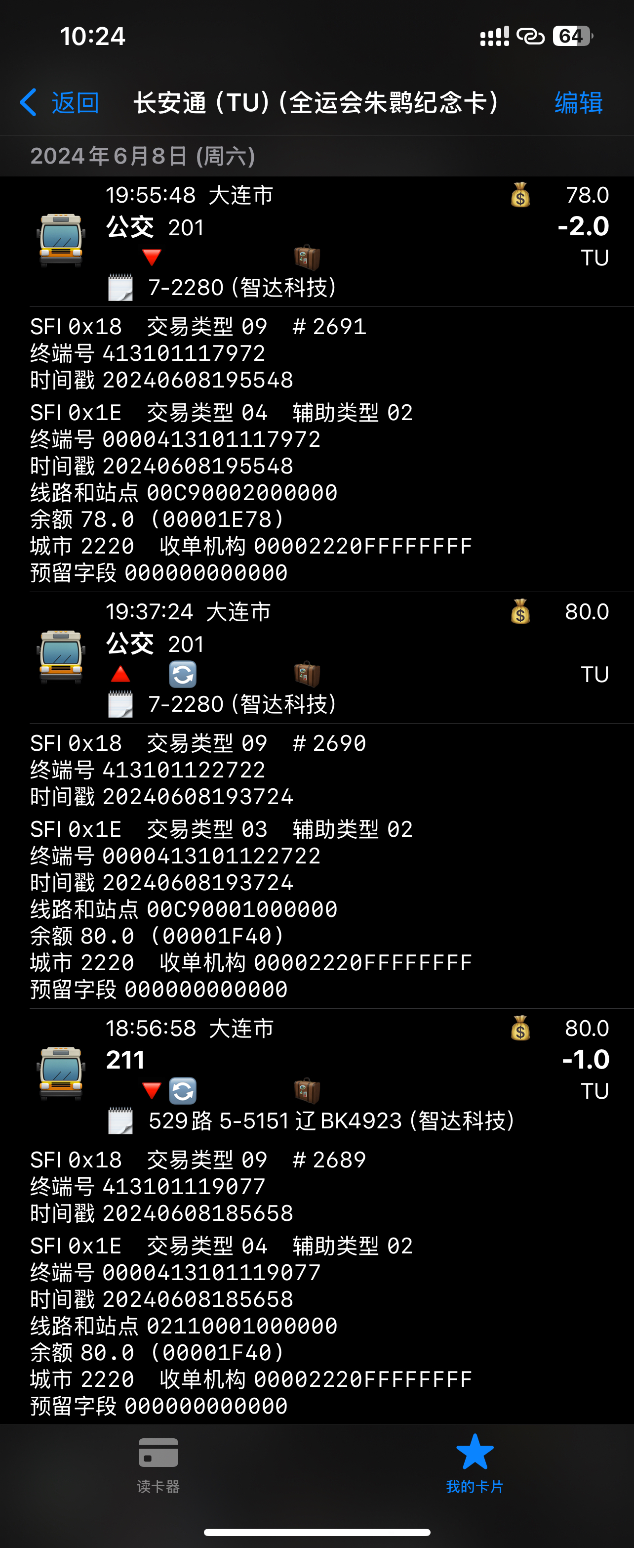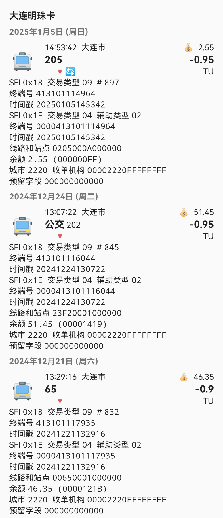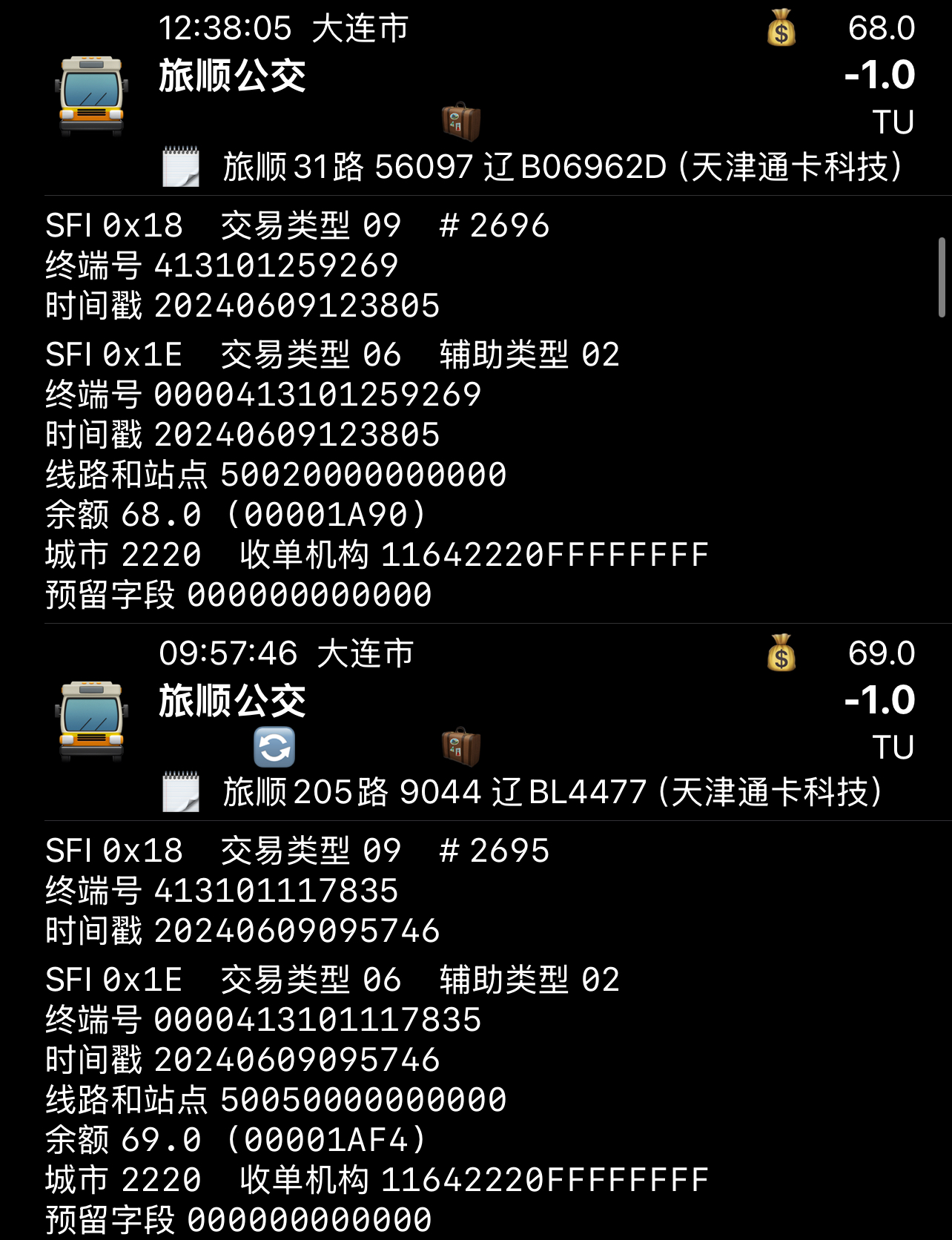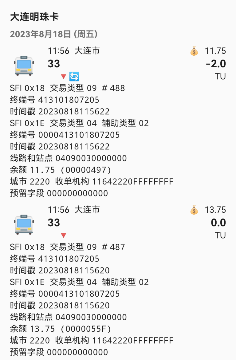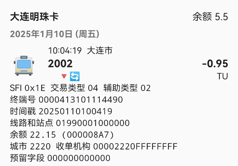大连公交使用的智达卡机的收单机构为00002220,线路号均为16进制(如图1) |