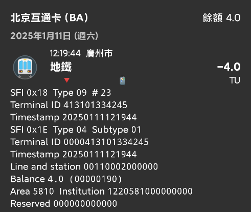 | Description | 北京一卡通未标明广州地铁11号线琶洲站出站记录 | ||||