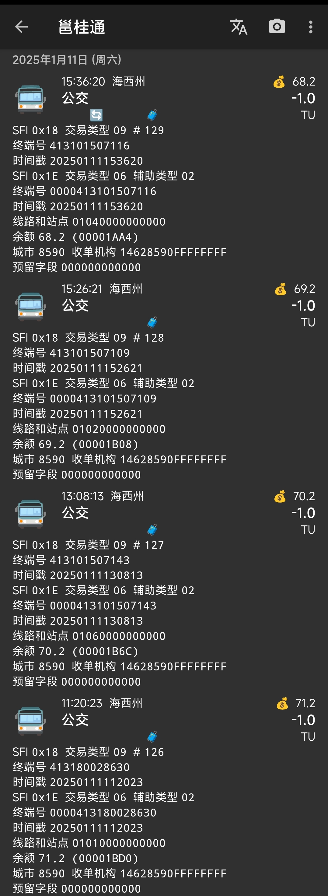 | Description | 青海省海西州格尔木市区公交一共有7条线路,为1至6路、9路,车上安装了天津通卡VD8000卡机,均支持交通联合支付。其中1路至6路写线路号为0101-0106,9路写线路号为0109,希望作者可以为其加上对应线路号显示。 | ||||
