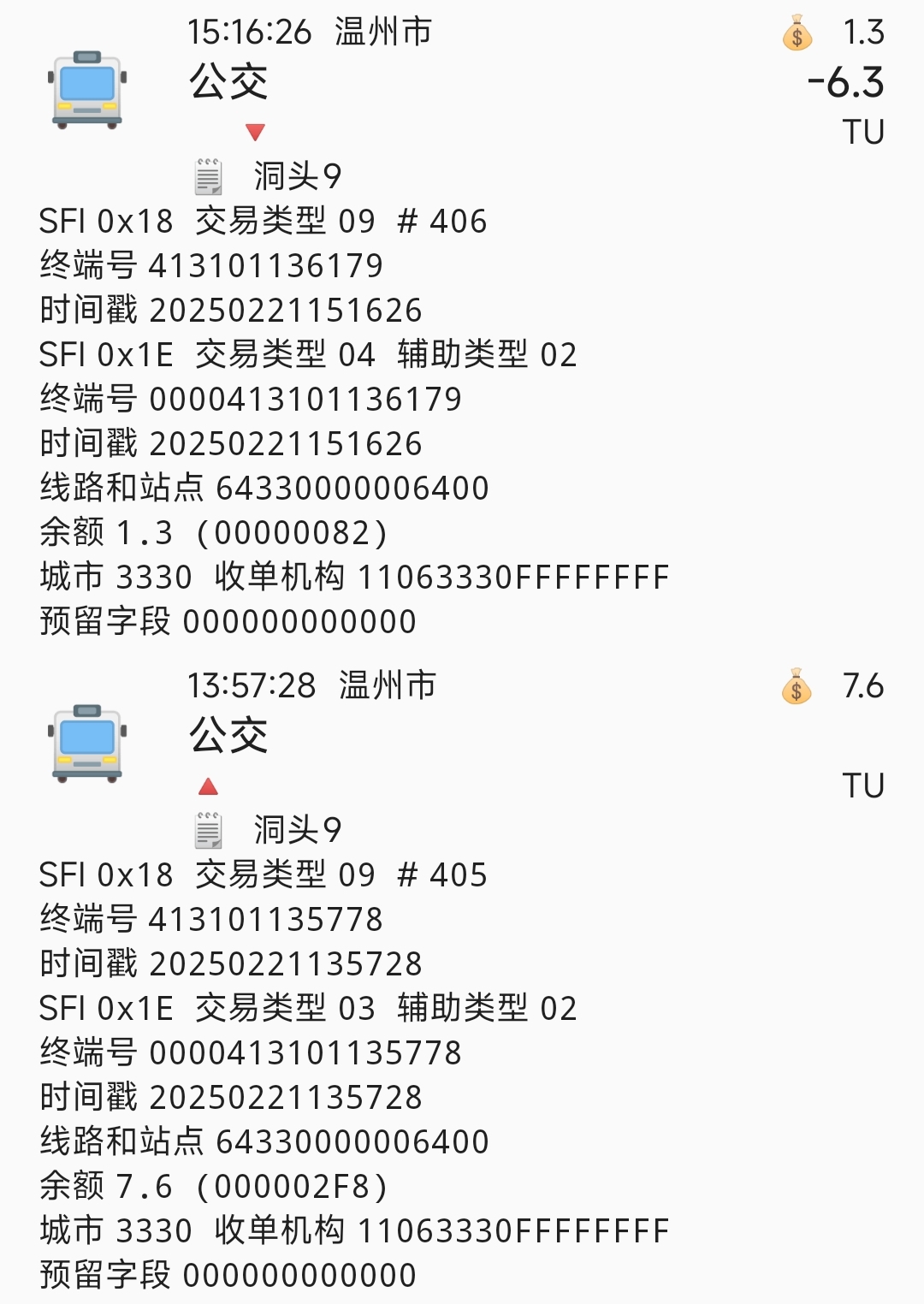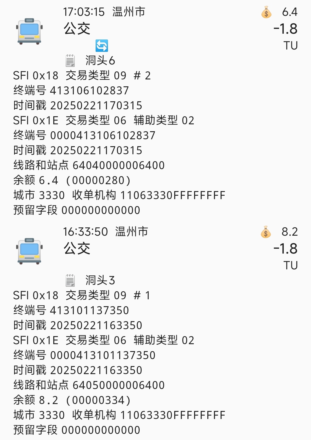 | Description | 图1、2是读卡识途记录,图3-6是畅行温州记录(温州交运官方软件) | ||||