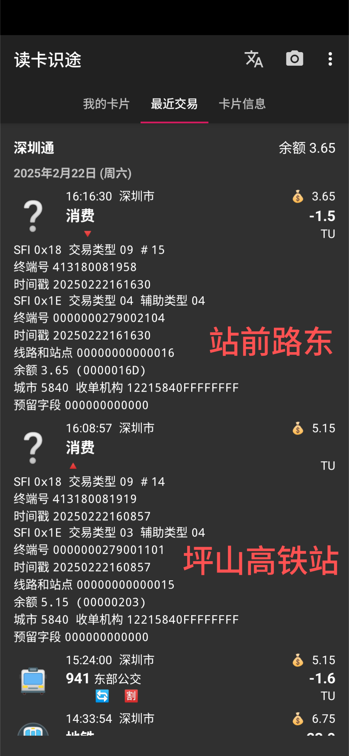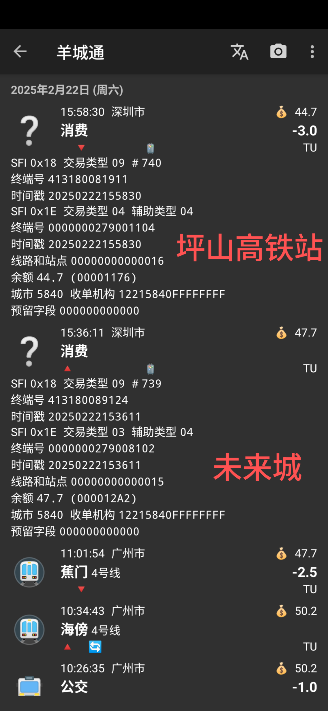 | Description | 图1、2是读卡识途,3、4是 Apple 钱包中相应的消费记录。推测进站是00000000000015,出站是00000000000016。 | ||||