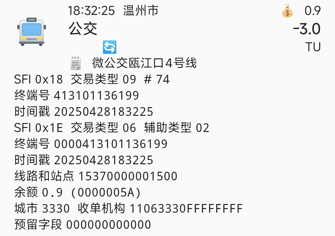 | Description | 99010000009900:B1站台线(鉴于目前B1路公交车上的卡机并没有启用,B1路的收费均是在站台上处理,且温州交运系统的编号是B1站台线,因而建议将99010000009900代表的线路更正为B1站台线) | ||||