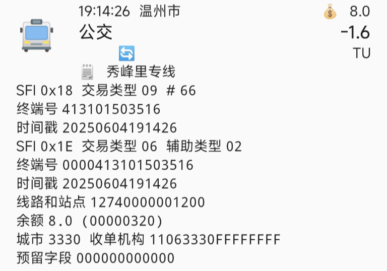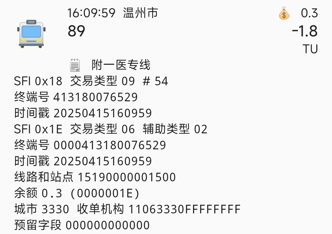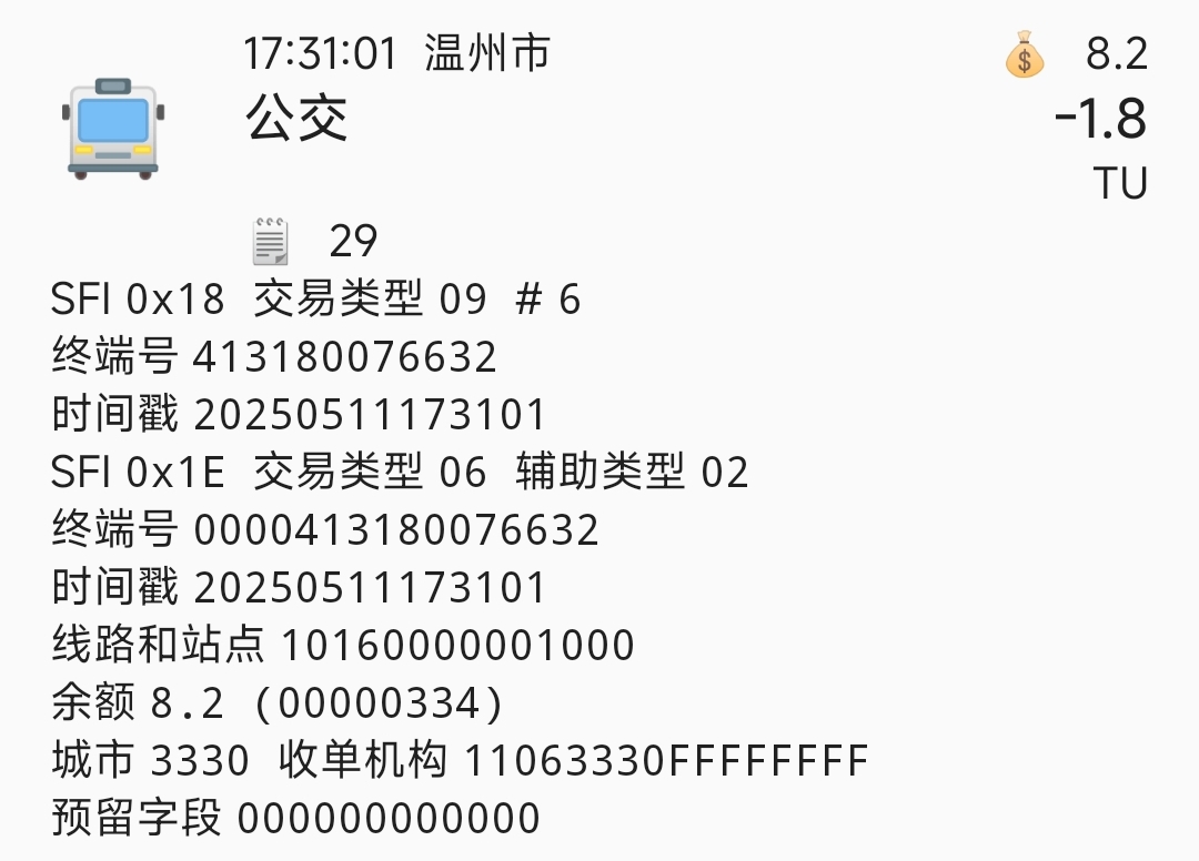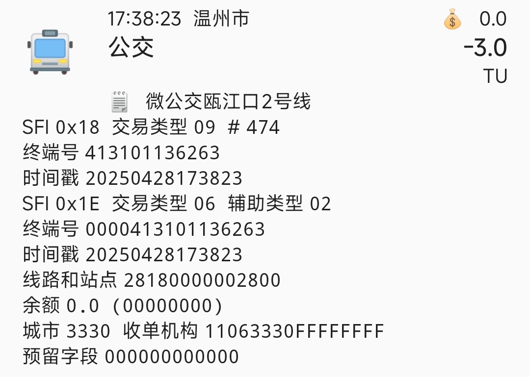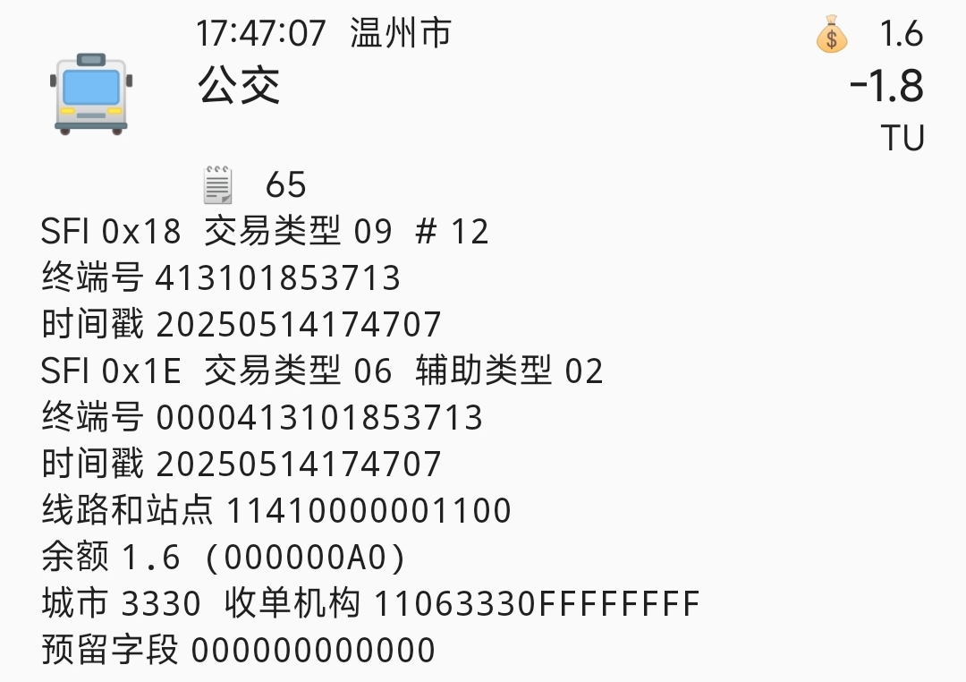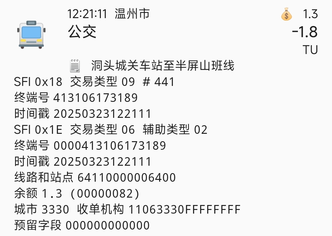 | Description | 99010000009900:B1站台线(鉴于目前B1路公交车上的卡机并没有启用,B1路的收费均是在站台上处理,且温州交运系统的编号是B1站台线,因而建议将99010000009900代表的线路更正为B1站台线) | ||||