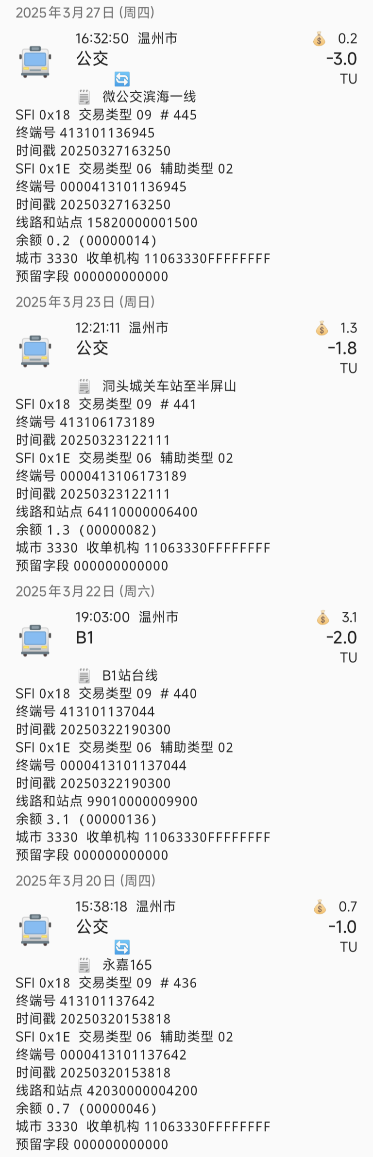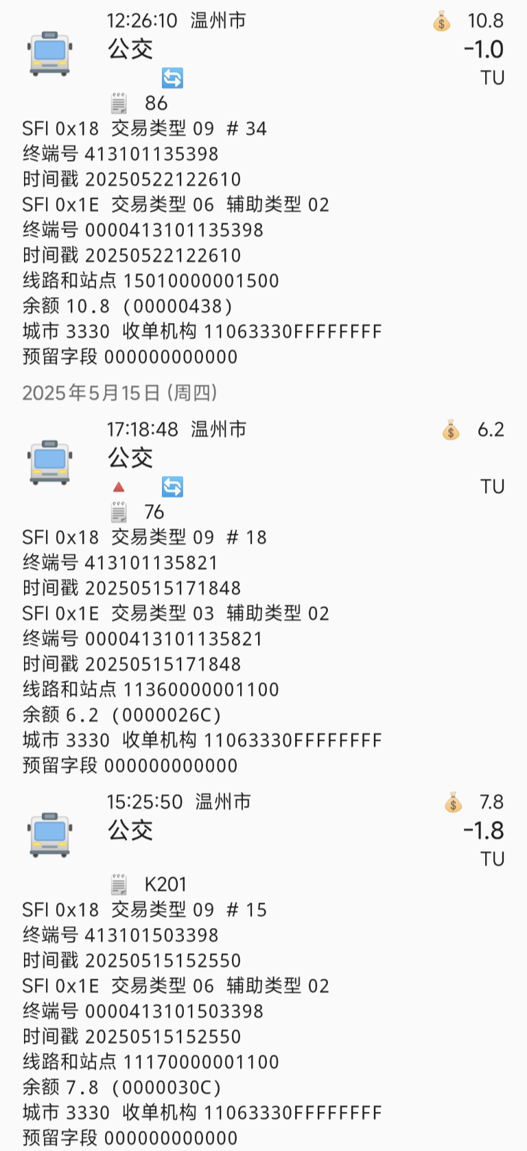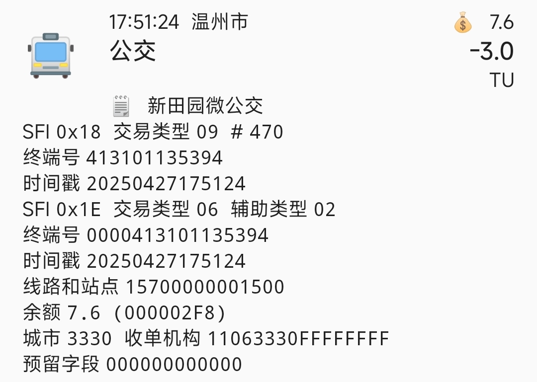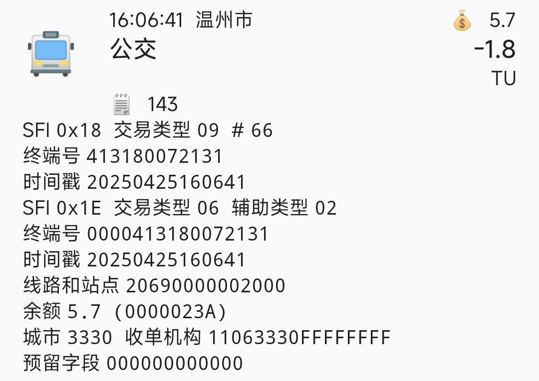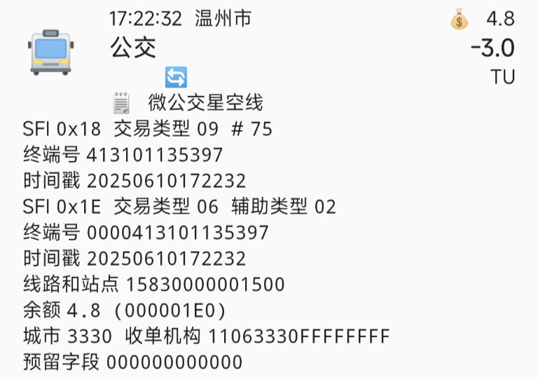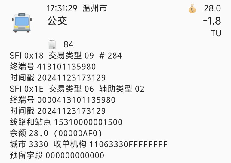 | Description | 99010000009900:B1站台线(鉴于目前B1路公交车上的卡机并没有启用,B1路的收费均是在站台上处理,且温州交运系统的编号是B1站台线,因而建议将99010000009900代表的线路更正为B1站台线) | ||||