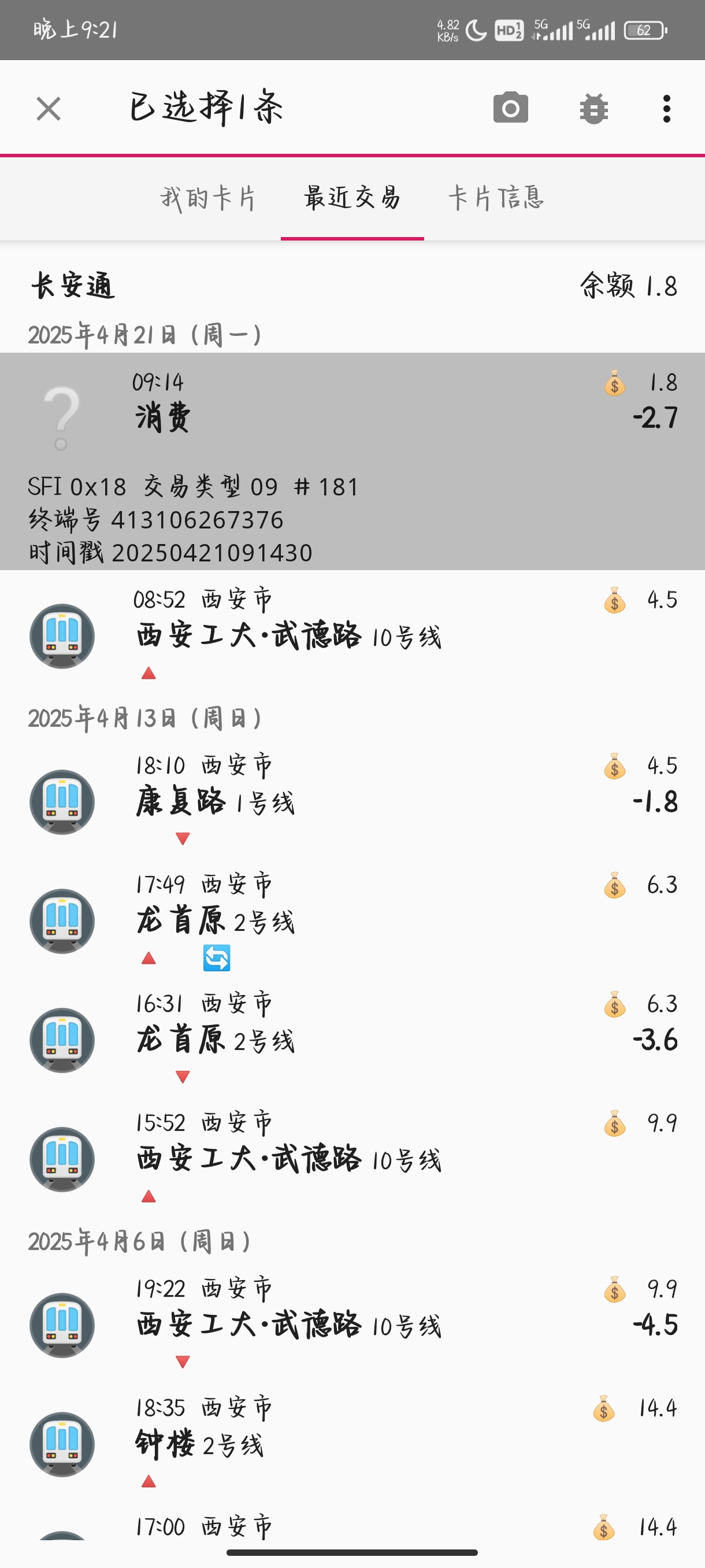 | Description | 该站为西安地铁八号线 市第三医院站,软件不显示站名,显示消费 | ||||